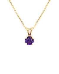 14k yellow pendant with a 6mm (1.00ctw) round amethyst. Chain not included.