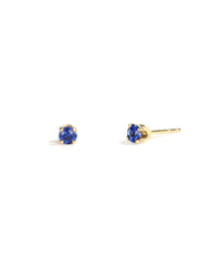 14k yellow gold studs with 3mm, (0.28ctw) round Ceylon sapphires.