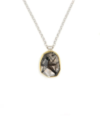 Sterling silver necklace with a faceted Brazilian black tourmaline (6.06ctw) with 18k yellow gold trim on a adjustable 16-18" sterling silver chain. By Emily Johnson
