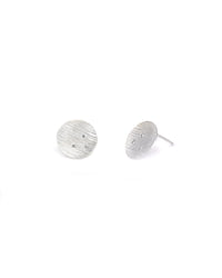Hammered matte sterling silver Calapooia river new moon disc earrings with (3) flush set diamonds (0.06ctw FG VS). Earrings measure 12mm. Crafted using recycled silver. By Toby Pomeroy