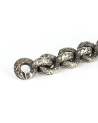 Chunky Round Link Bracelet in textured and oxidized silver. 8 1/2" long, 1/2" wide. Hand crafted by Michael Jensen