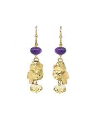 Hand Fabricated birds in 18k yellow gold hang between faceted amethyst and citrine beads from gold hooks. Earrings hang 2". Made in Italy. By Misani