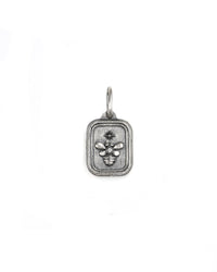 Sterling silver baby rectangle beehive and bee charm with diamonds (.013ctw) on one side. Approximate measurements: 13/16” x 6/16”. Made in New York. By Erica Molinari