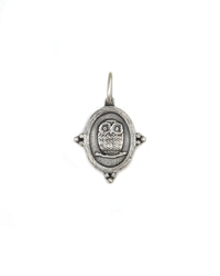 Sterling silver double-sided baby owl and north star charm with diamonds (0.01ctw) in its eyes. Approximate measurements: : 3/4”x 3/4”. Made in New York. By Erica Molinari