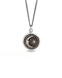 The moon and stars on this talisman remind us to trust in something bigger than ourselves. When we give up control and surrender to what is, we can more clearly see a path forward. 2mm Diamond set in the background. Pendant hangs 19mm on a 18" sterling silver chain. Crafted in Vancouver, Canada by Pyrrha.