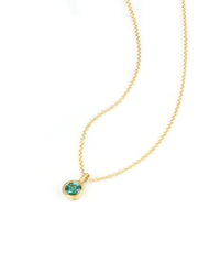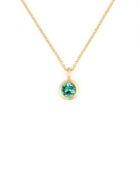 Round green tourmaline (0.48ctw) set in brushed 18k yellow gold bezel charm pendant. The pendant hangs approximately 10mm including bail. Chain not included.