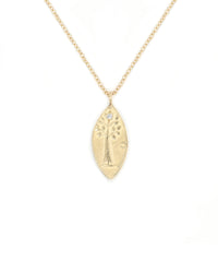 Based on an artifact from Rome 74 AD, this 14K yellow gold "Honest with Yourself" pendant measures 5/8" inches and is set with (1) 0.03ct diamond. Pendant hangs 3/4" from a 16" 14K yellow gold cable chain. Crafted in Nashville, TN by Robin Haley.