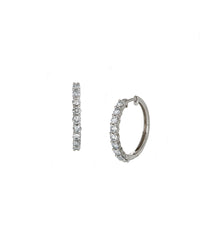 14k white gold hoop earrings, shared prong-set halfway with 1.00ctw FGSI lab diamonds