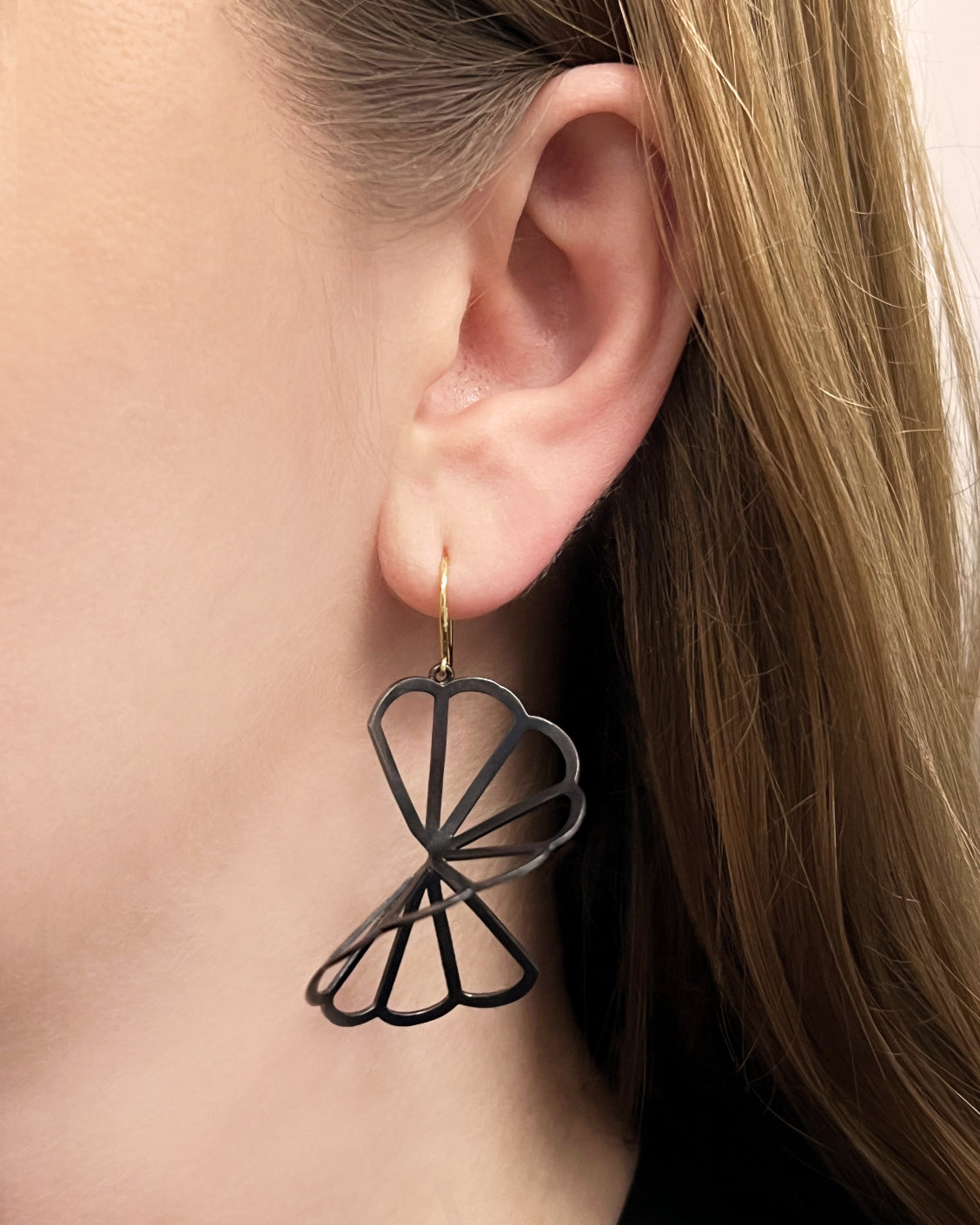 Large Cloud Fold Earrings in recycled oxidized sterling silver with recycled 18k yellow gold French wires. Earrings hang 2". By Karin Jacobson