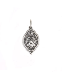Sterling silver double-sided elongated oval queen bee and crown charm with Carpe Diem meaning "Seize the day". Approximate measurements: 1”& 1/4”x 5/8”. Made in New York. By Erica Molinari