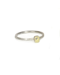 Sterling silver 2mm wide textured linear band with a 5x4mm 14k rose gold cell offset with champagne diamond (0.01ctw). Size 7.5. Wear on its own or stack with more rings to create your own unique style. By Emily Johnson