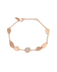 A 14k rose gold bracelet featuring a series of pebble stations. The center pebble is pavé-set with 0.27 ct of diamonds, while the surrounding pebbles alternate between brushed and high-polish finishes. Adjustable from 6 3/4" to 7 1/2". Made in Italy. By Peroni & Parise