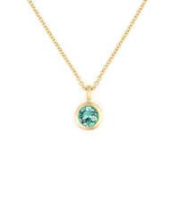 Round green tourmaline (0.66ctw) set in brushed 18k yellow gold bezel charm pendant. The pendant hangs approximately 12mm including bail. Chain not included.