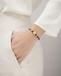 3mm leather Bracelet with silver elements and a gold wrapped onyx bead. Bracelet measures 7 1/2". By Misani, Made in Italy