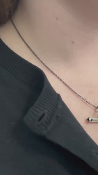 A vintage-inspired charm with a kinetic twist. Inspired by vintage T-bar chains for pocket-watches, this charm can be worn solo, or clustered with your favorite charms. A onyx round bead rolls freely in the open face of the pendant, capped between inverted gemstone points. Sterling silver, hangs approximately 5/8" x 1". By Emma Brooke