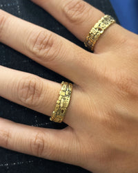 18k yellow gold Stone Barn band, 6.75mm width, Available in size 10.25. Custom sizes available upon request - contact us for assistance in finding your perfect fit. Designed by Alex Sepkus, made in New York.