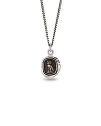 The great horned owl is a warrior bird representing strength, courage, and wisdom. Depicted facing forward on this talisman, the owl vigilantly watches over loved ones. Handcrafted in Vancouver, Canada in recycled sterling silver. On 18" oxidized sterling silver chain. By Pyrrha